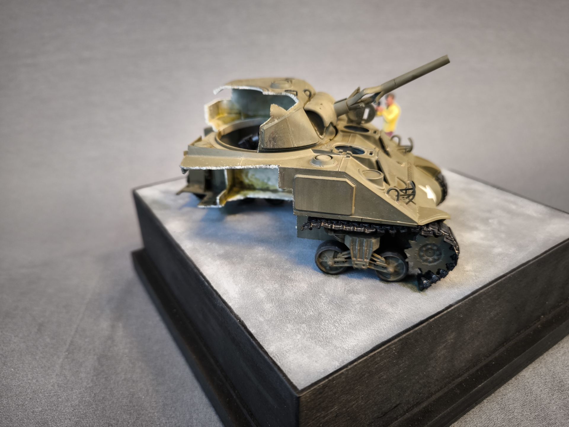 J'ai alors réalisé un socle représentant une partie du monument sur lequel repose le Sherman.