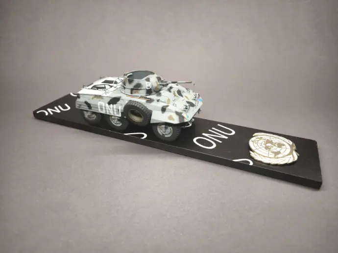 Ce véhicule fait partie d’un lot de véhicules katangais capturés par le contingent suédois. Le FORD M8 a été développé en 1941-1942 et utilisé lors de la seconde guerre mondiale par les Etats-Unis et leurs alliés.