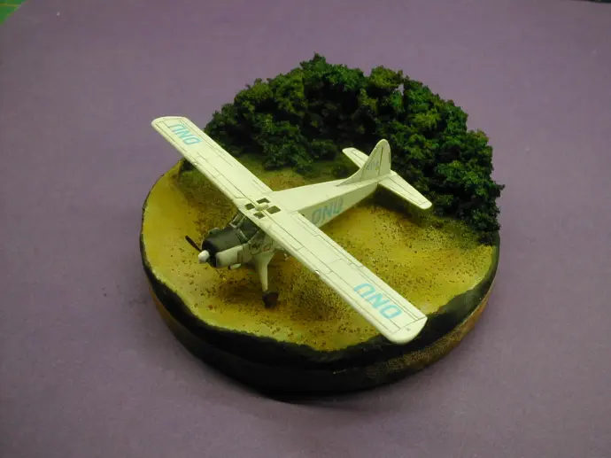 Le Beaver est un appareil de transport léger créé pour opérer depuis des pistes sommaires et peut être équipé de flotteurs et de skis.  L’appareil représenté appartenait à la flotte d’appareils volants des Nations-Unies et participa à plusieurs missions entre 1957 et 1971.  Il est représenté ici lors de l’Opération des Nations-Unies au Congo en 1963.